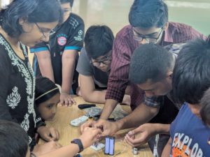 দুইদিনের কর্মশালার প্রথম দিনে শিক্ষার্থীরা বিভিন্ন ইলেকট্রনিক কম্পোনেন্টস ও সার্কিট চিনেছে, জেনেছে কীভাবে রেজিস্টরের কালার কোড ও ওহম সূত্র দিয়ে সার্কিট ডিজাইন করা হয়। তারা শিখেছে ডিজিটাল মাল্টিমিটার ব্যাবহার ও কন্টিনিউটি টেস্ট।