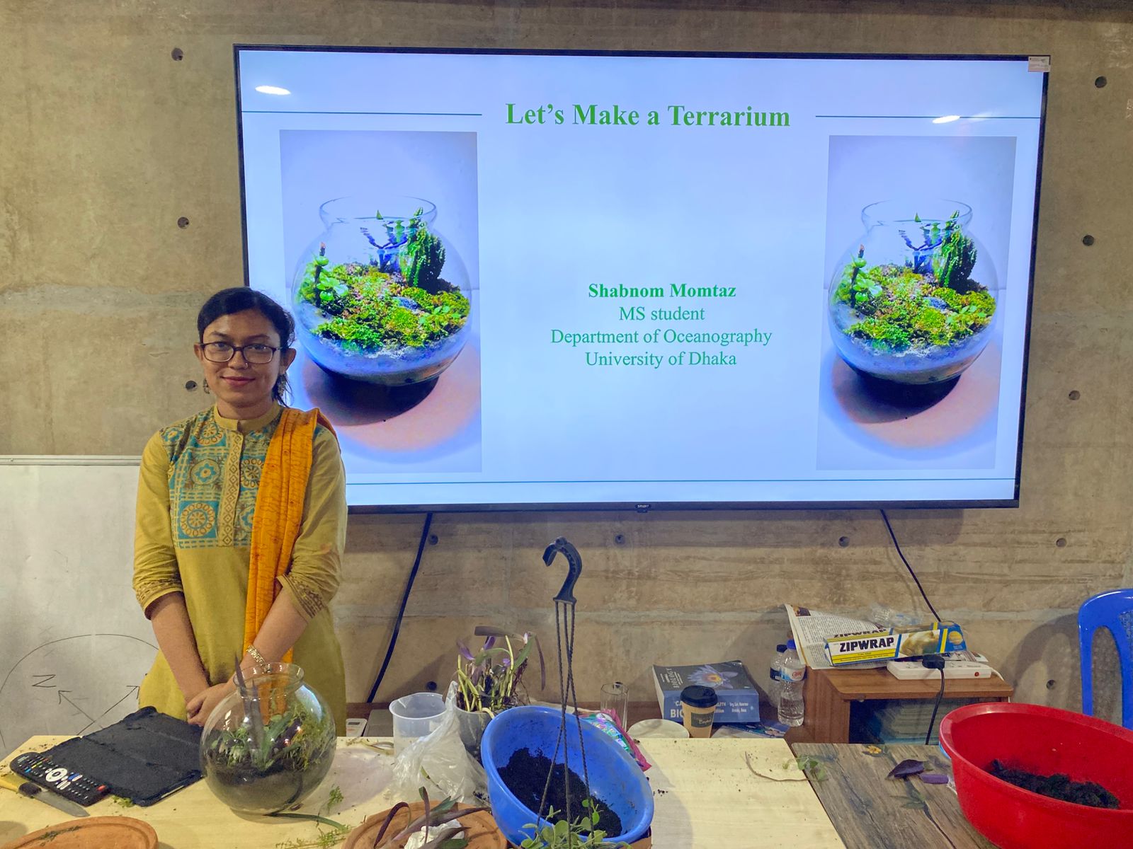 Shabnom Momtaz, MS Student of University of Dhaka, conducted an engaging session on Terrarium-Making at A S I School of Life. Each participant created a small terrarium with plants collected from gardens and the roadside.